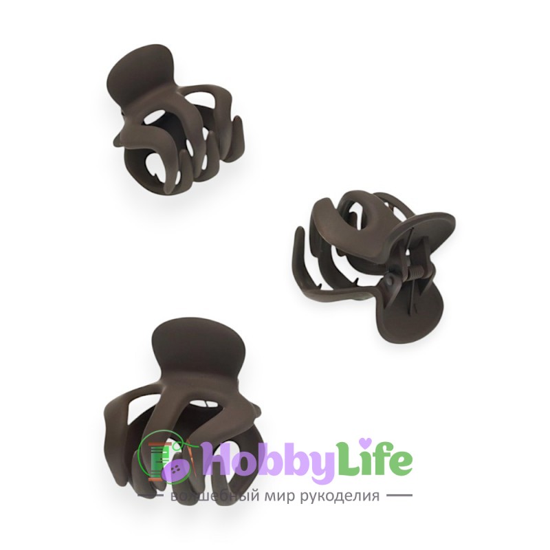 - Крабики для волос матовые 5*4,5 см (1 шт), коричневый