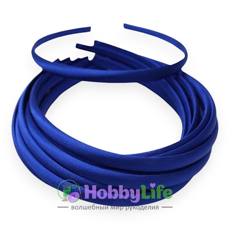 Ободки для волос с атласной тканью пластик. 1 см (1 шт), синий №25