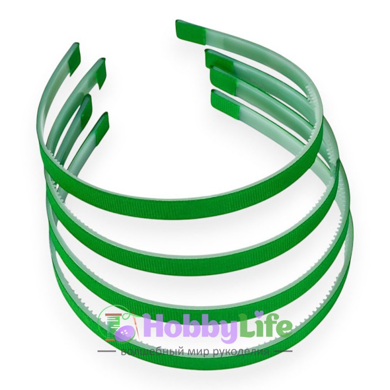 Ободки для волос с репсовой тканью пластик. 1 см (1 шт), зеленый №061