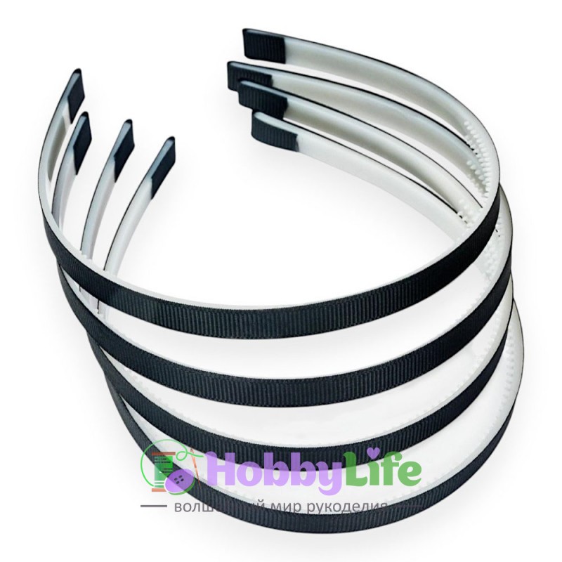Ободки для волос с репсовой тканью пластик. 1 см (1 шт), черный №39