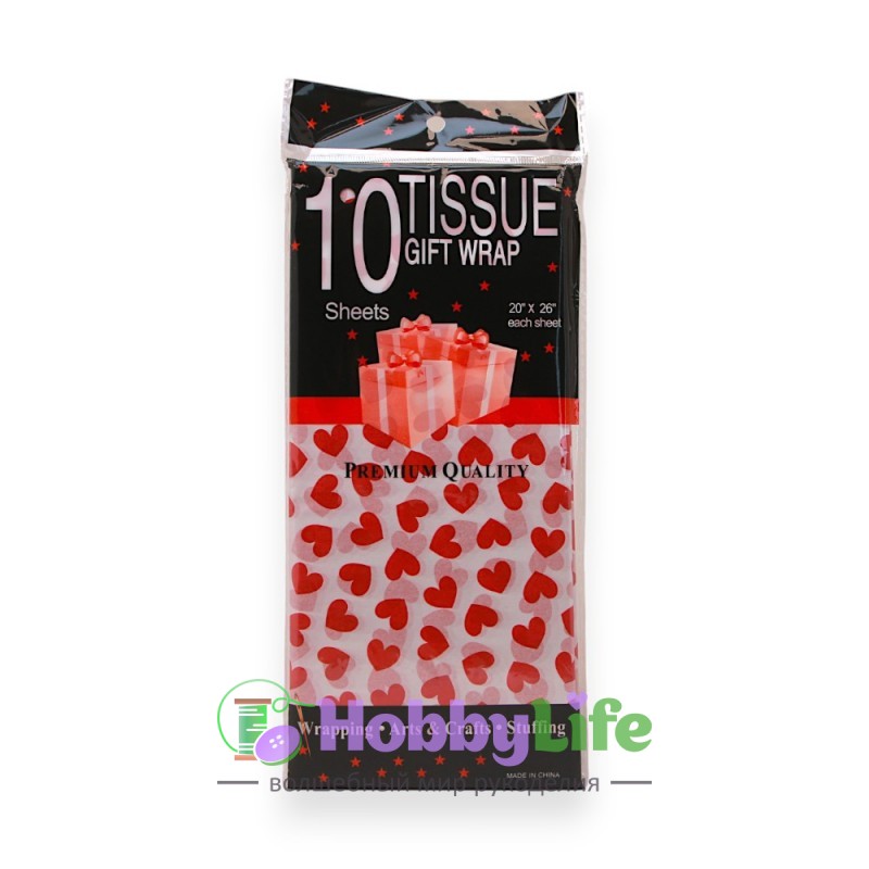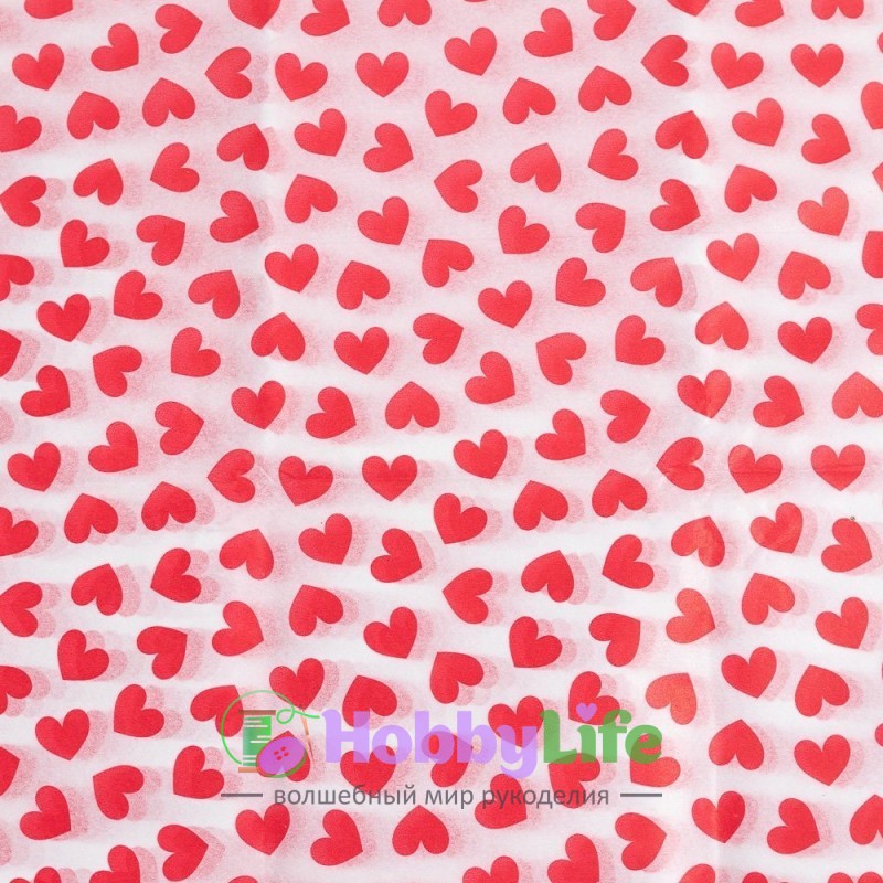 - Бумага тишью 50*66 см "Сердечки" (10 листов), белый/красный
