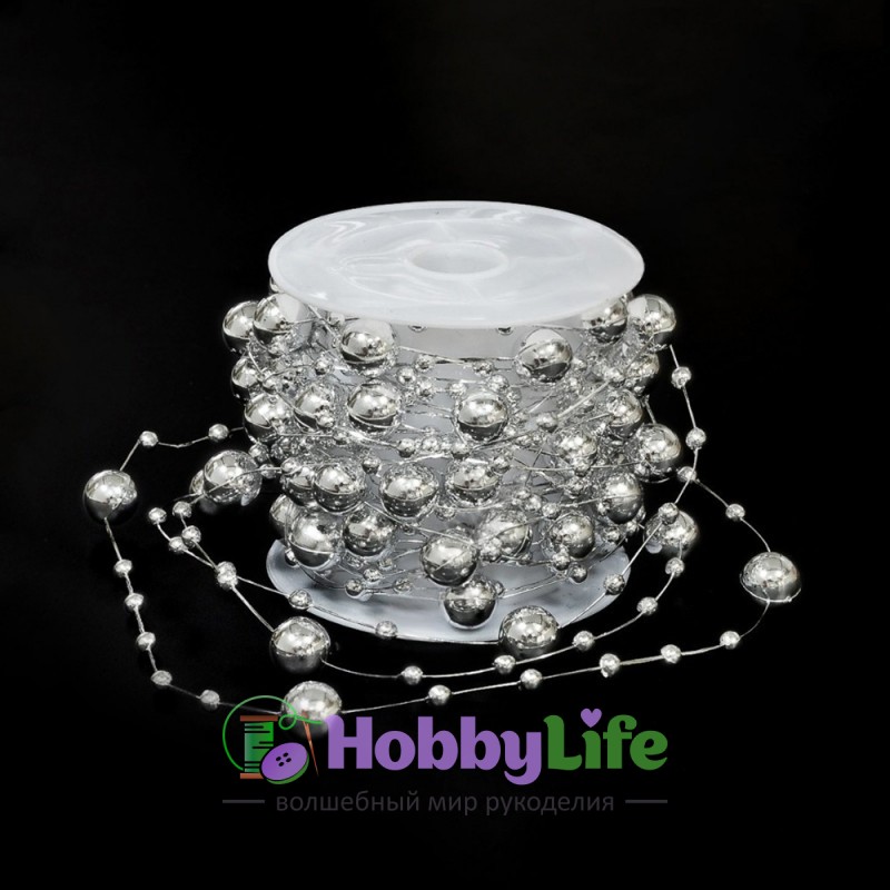 - Новогодние бусы на катушке "Бусинки" 8 мм*5 м, серебро
