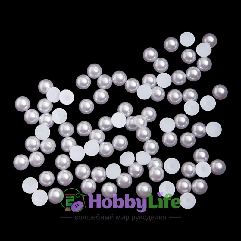 Бусинки половинки под жемчуг 8 мм, 10 г (примерно 73 шт) белый №129