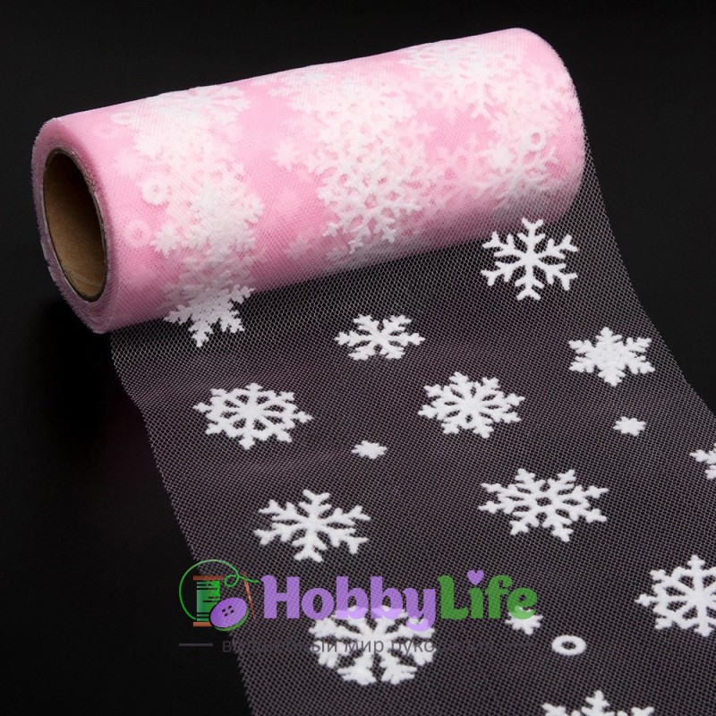 Нежный материал с зимним узором для праздничного творчества. На воздушной голубой ткани нанесены изящные снежинки, создающие эффект морозного кружева. Идеален для декора одежды, создания аксессуаров, украшения подарков и новогоднего интерьера. Фатин легко драпируется, сохраняет форму и придает образу волшебную легкость.