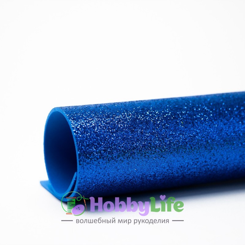 - Глиттерный фоамиран А4, 2 мм Premium, синий №20