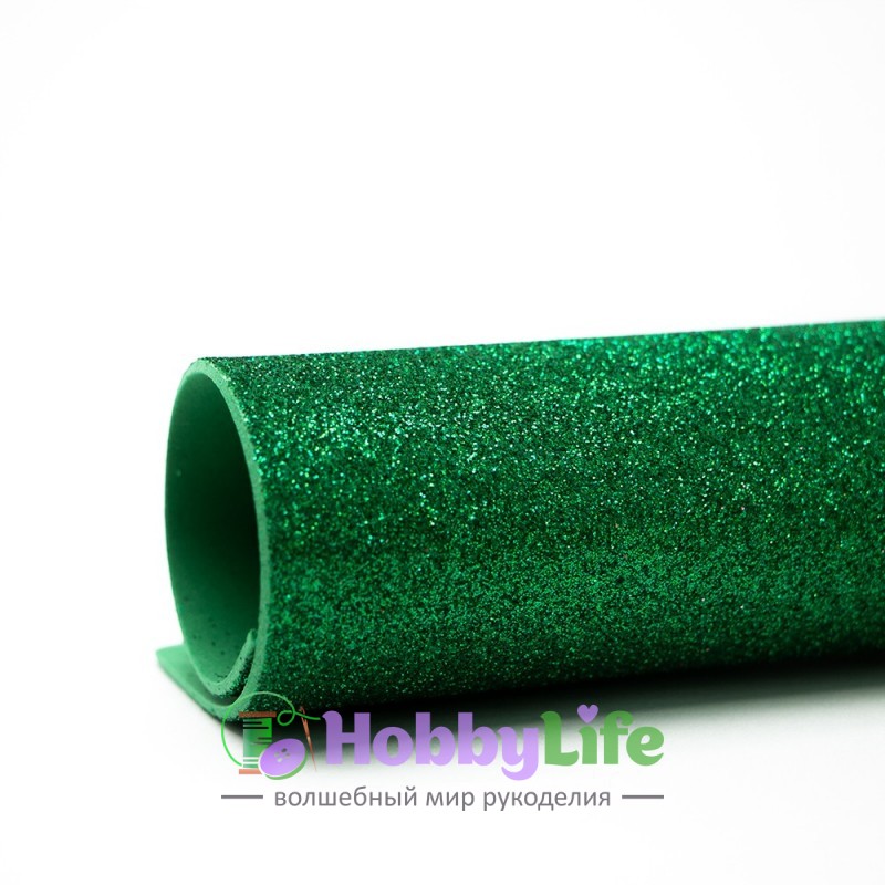Глиттерный фоамиран А4, 2 мм Premium, темно-зеленый №2027