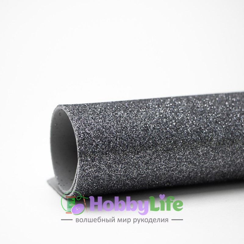 - Глиттерный фоамиран А4, 2 мм Premium, черное серебро №018