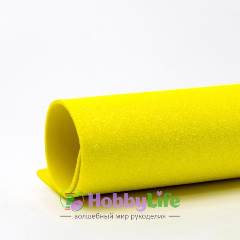 Глиттерный фоамиран А4, 2 мм Premium, желтый №029В
