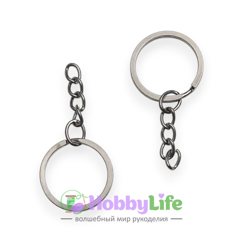 - Кольца для брелоков с цепочкой, 25 мм (1 шт), темное серебро