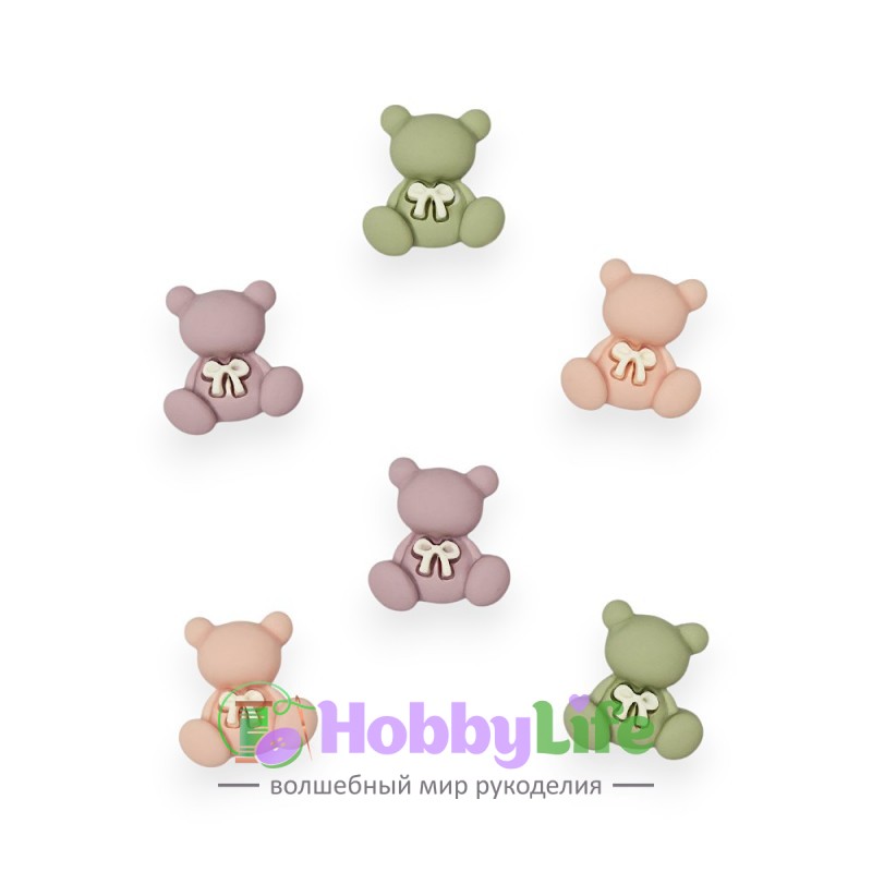 Кабошон "Мишка" 2,2*2,5 см (набор 6 шт), ассорти №6