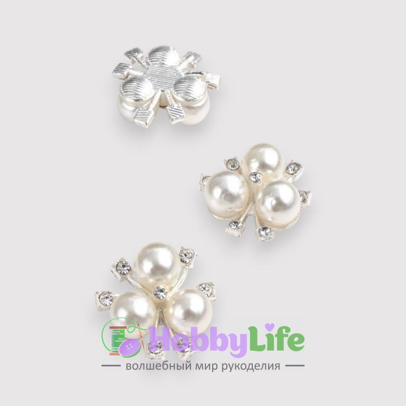 - Кабошон флоризель металл "Цветочек" 2 см (1 шт), белый/серебро