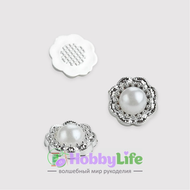 - Кабошоны флоризель пластик 1,8 см (1 шт), серебро