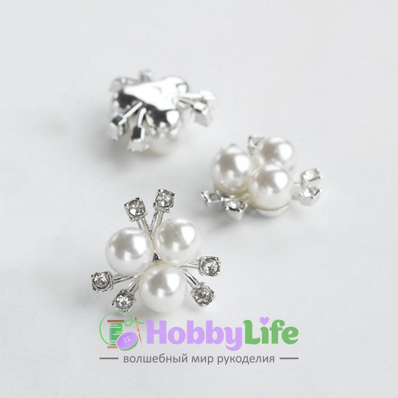 - Кабошоны флоризель пластик 2 см (1 шт), серебро