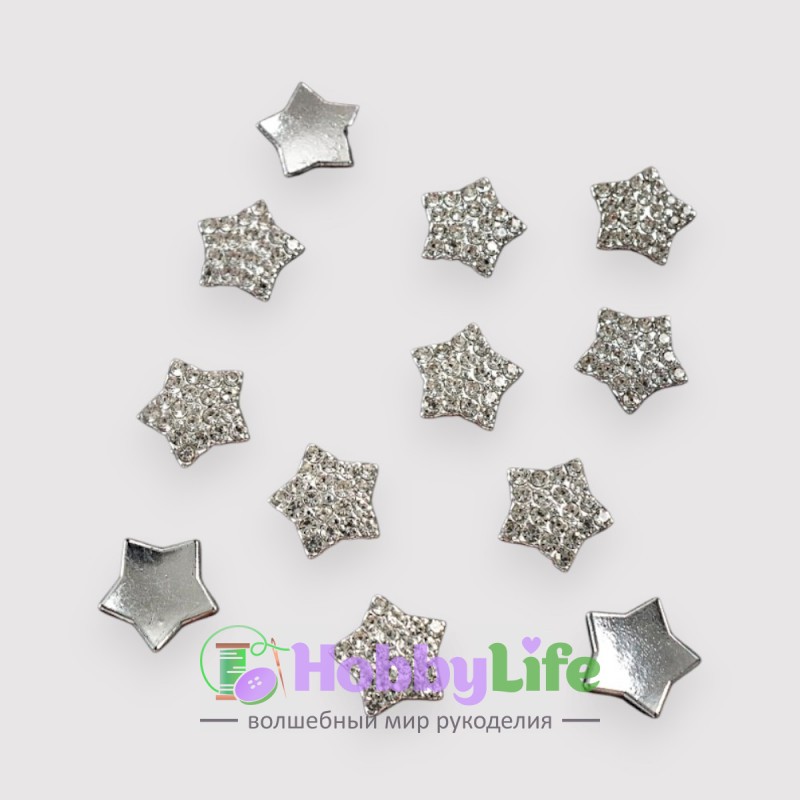 - Кабошоны флоризель пластик 1,5*1,5 см "Звездочка" (1 шт), серебро