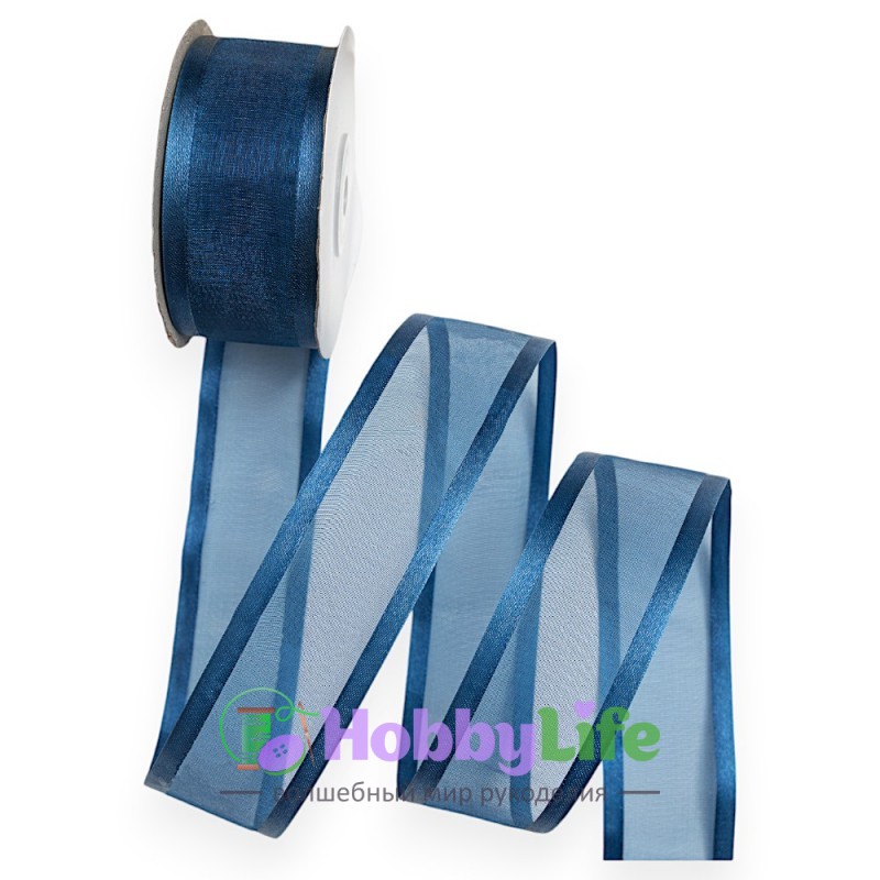Лента органза с атласными краями 4 см (1 м), темно-синий №38