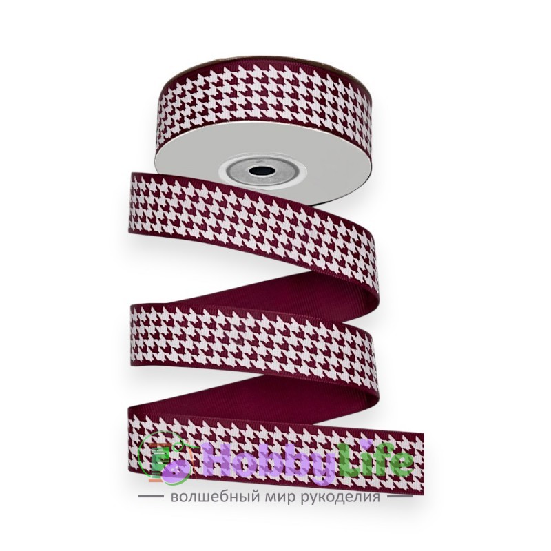 - Лента репсовая 2,5 см (1 м) с рисунком "Гусиная лапка", бордовый №1