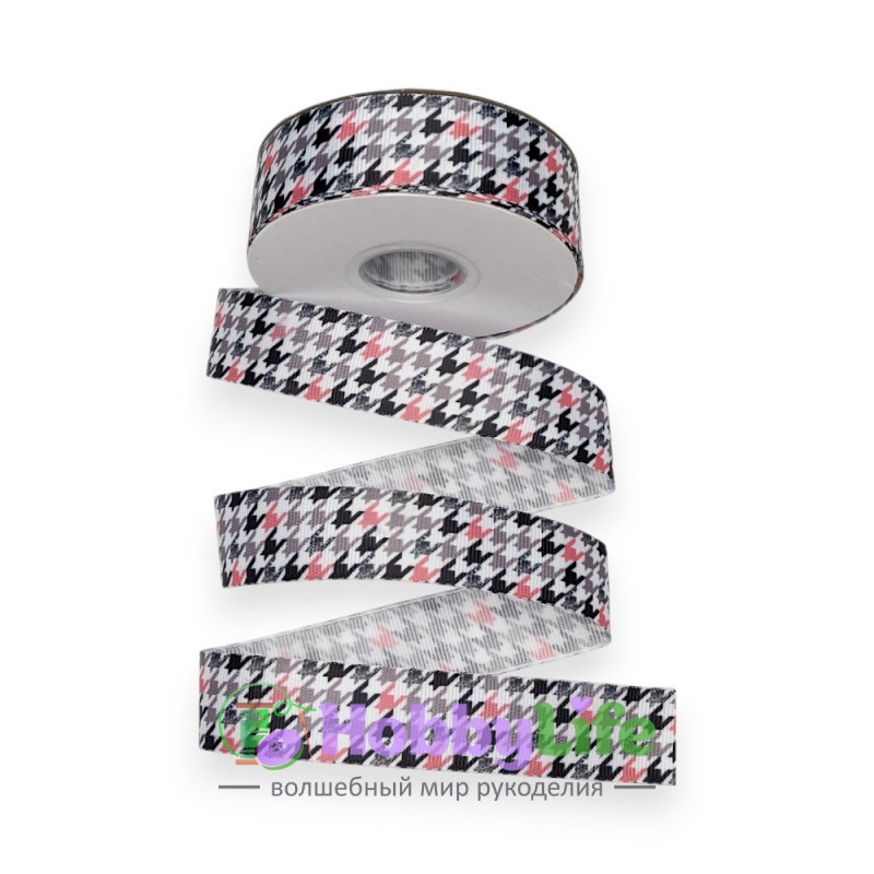 - Лента репсовая 2,5 см (1 м) с рисунком "Гусиная лапка", мультиколор №4
