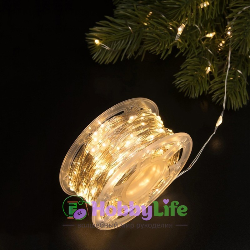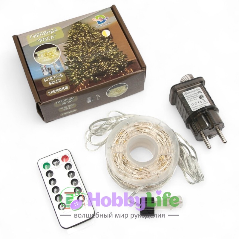 - Гирлянда "Роса" 50 м (цвет теплый, белый провод)