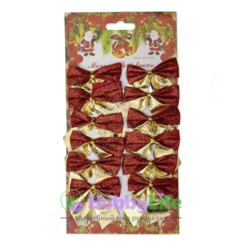 Новогодние банты 5,5 см (12 шт), красный/золото