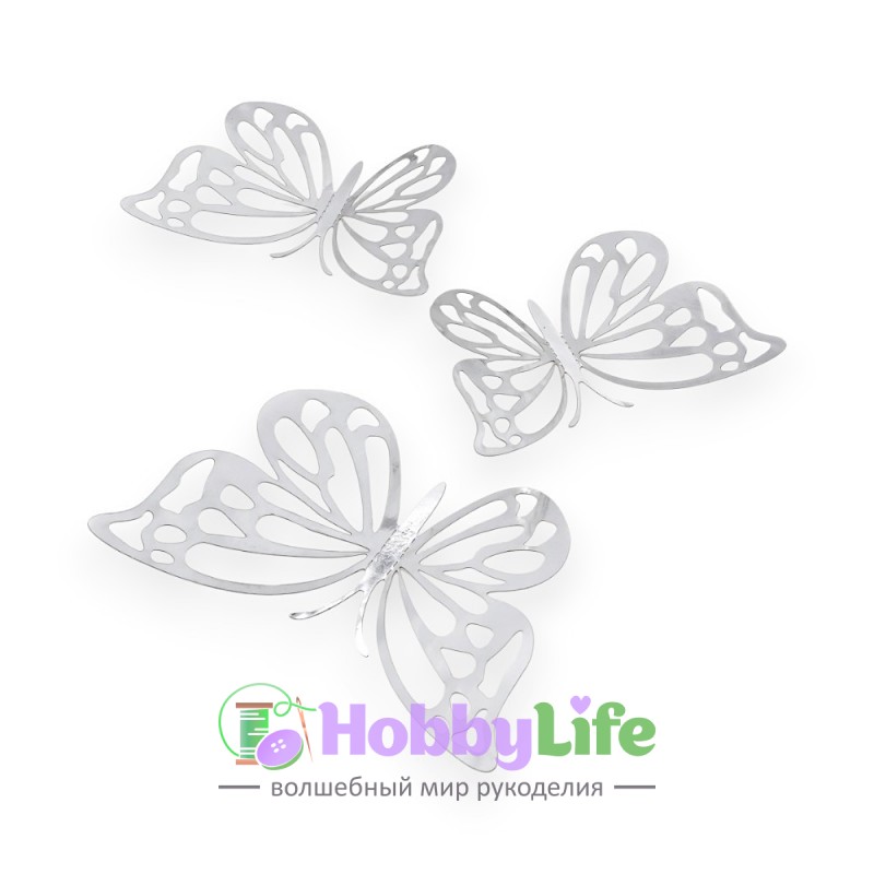 - Бабочки декоративные 3D (12 шт), серебро №7