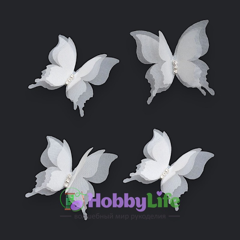 - Бабочки шифоновые трехслойные 5 см (1 шт), белый №12