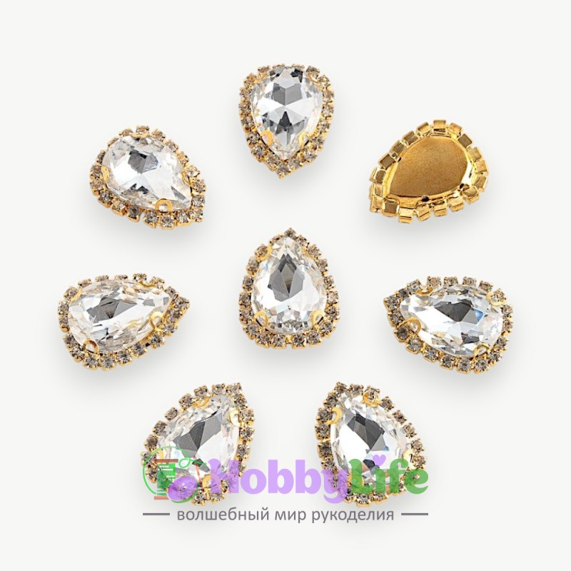 - Стразы пришивные в золотой оправе 17*23 мм "Капля" (1 шт), серебро
