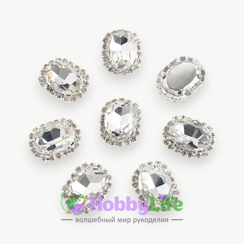 - Стразы пришивные в серебряной оправе 17*22 мм "Овал" (1 шт), серебро