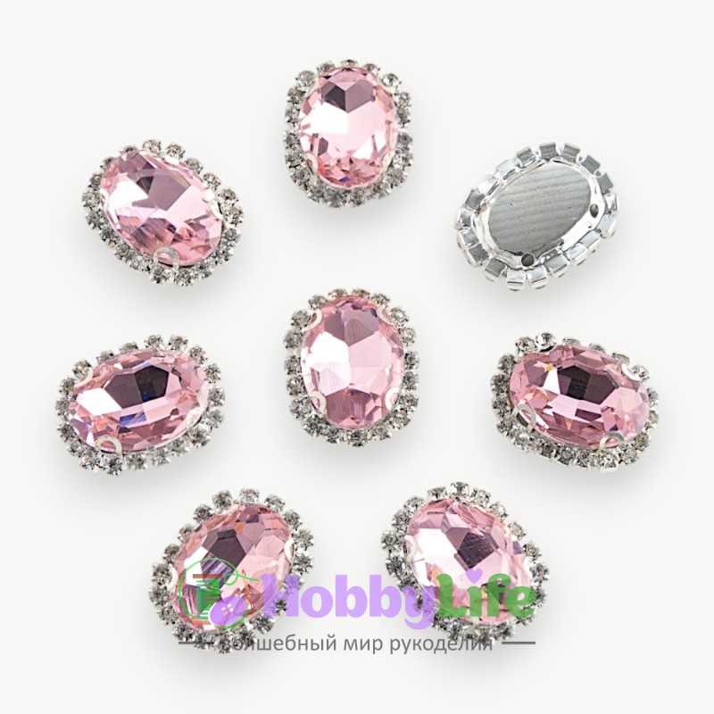 - Стразы пришивные в серебряной оправе 17*22 мм "Овал" (1 шт), светло-розовый