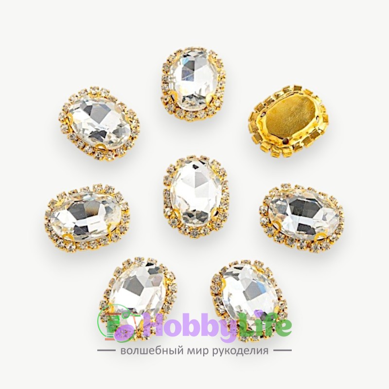 Стразы пришивные в золотой оправе 17*22 мм "Овал" (1 шт), серебро