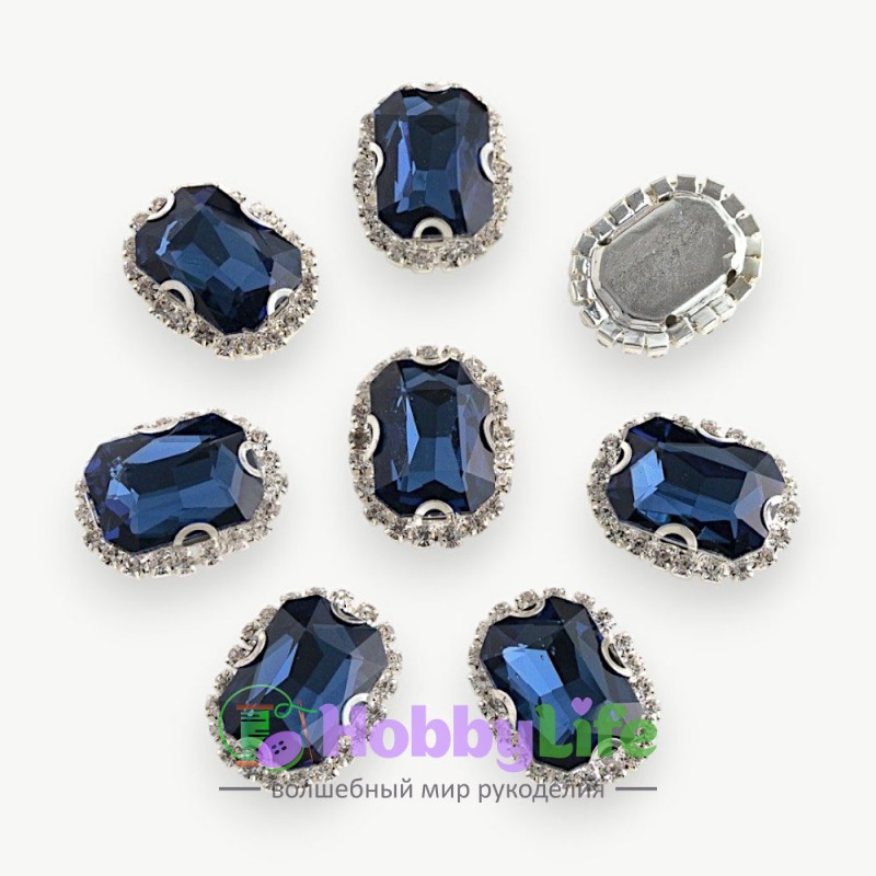 - Стразы пришивные в серебряной оправе 18*24 мм "Прямоугольник" (1 шт), темно-синий