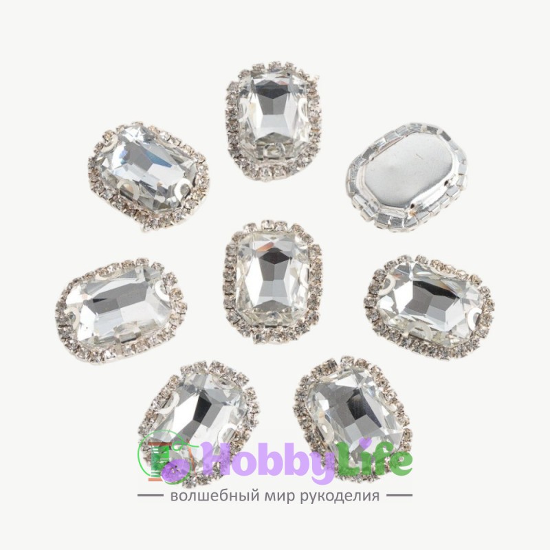 - Стразы пришивные в серебряной оправе 18*24 мм "Прямоугольник" (1 шт), серебро