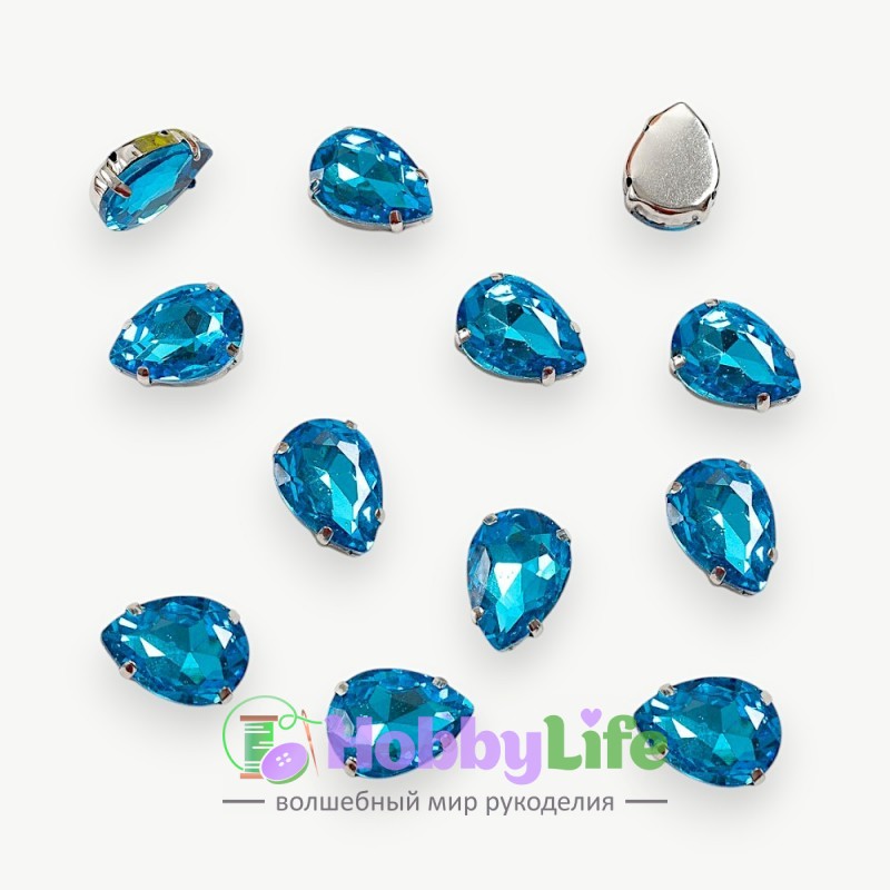 Стразы пришивные 18 мм "Капелька" (1 шт), голубой