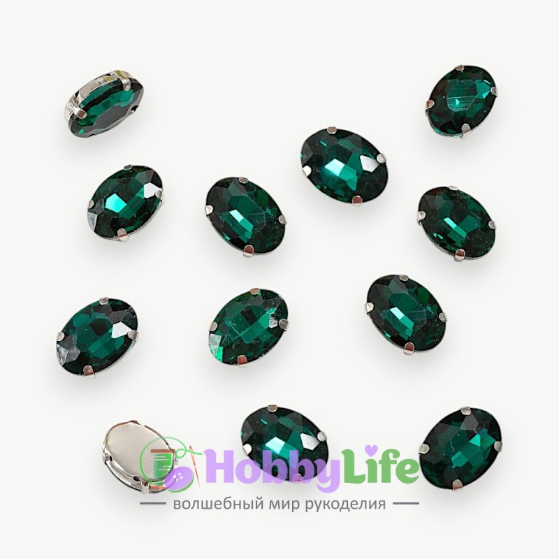 - Стразы пришивные 18 мм "Овал" (1 шт), изумрудный