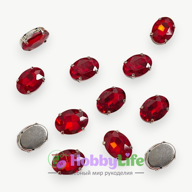 - Стразы пришивные 18 мм "Овал" (1 шт), красный
