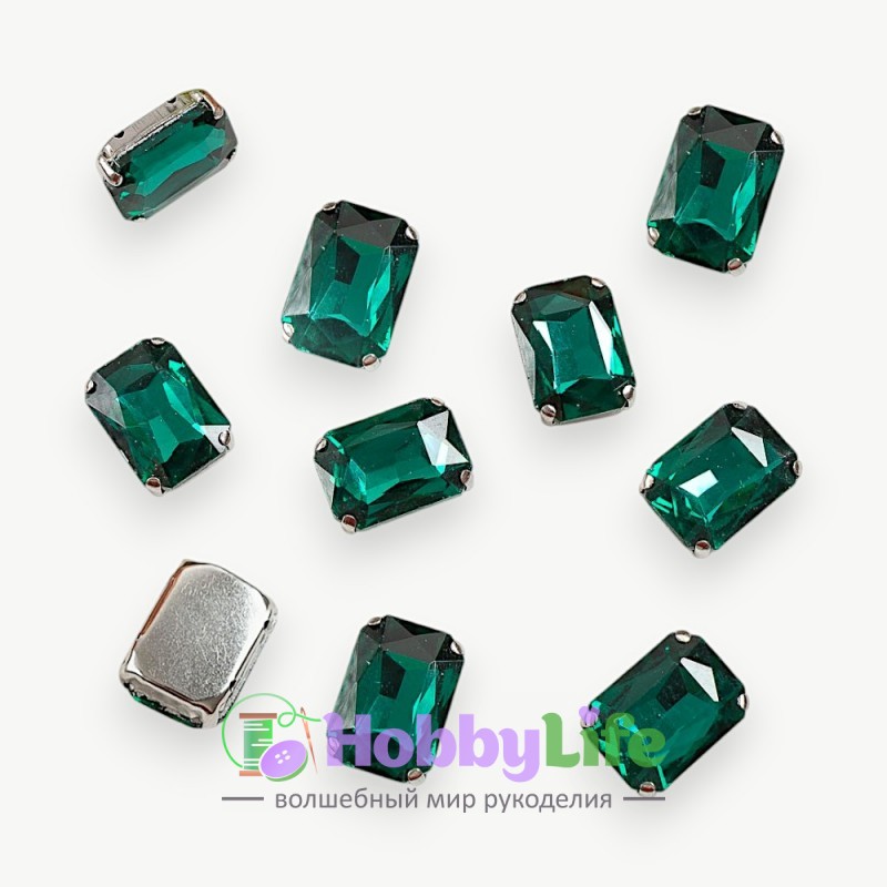 - Стразы пришивные 18 мм "Прямоугольник" (1 шт), изумрудный