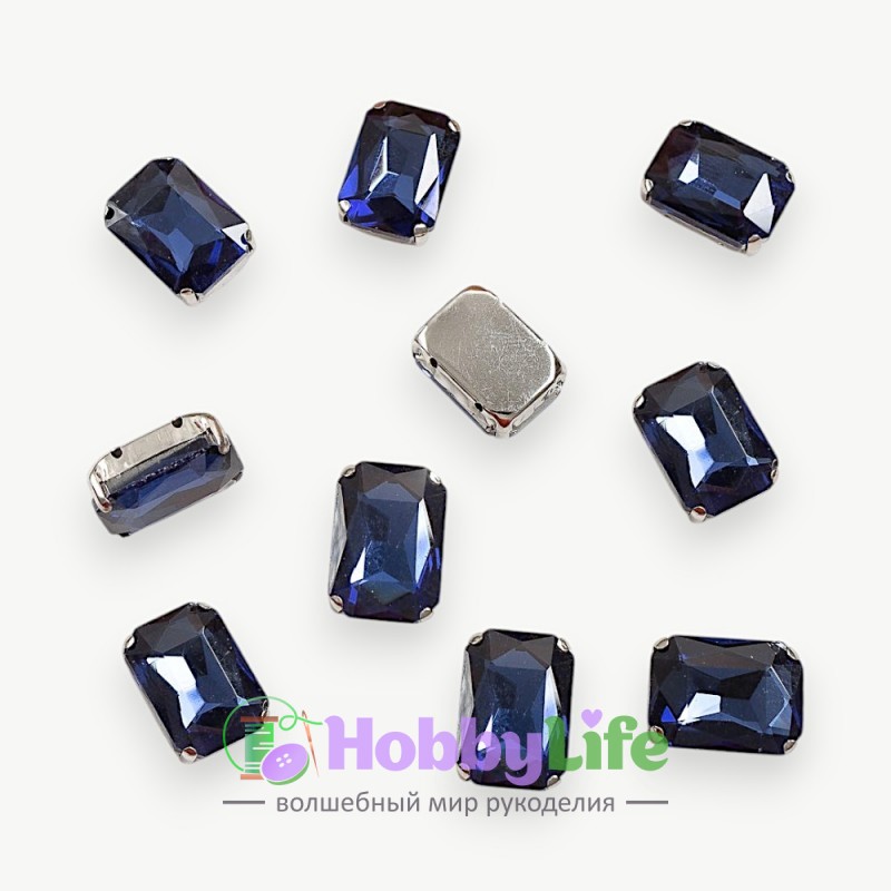 - Стразы пришивные 18 мм "Прямоугольник" (1 шт), темно-синий
