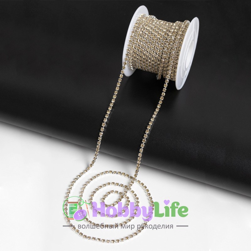 Стразы в бобине SS8М 2,4 мм*9 м, золото в серебряной оправе