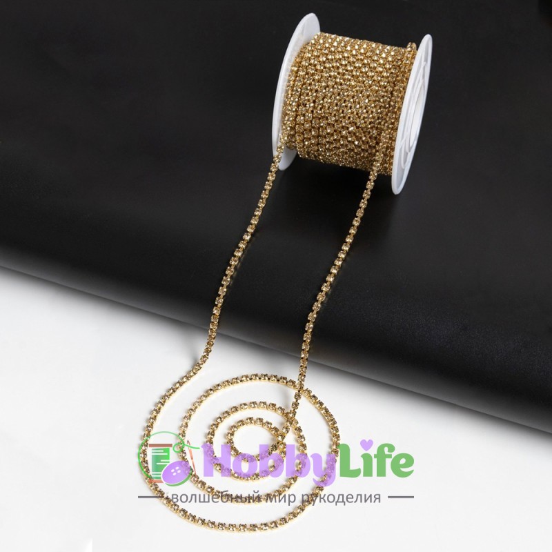- Стразы в бобине SS8М 2,4 мм*9 м, золото в золотой оправе