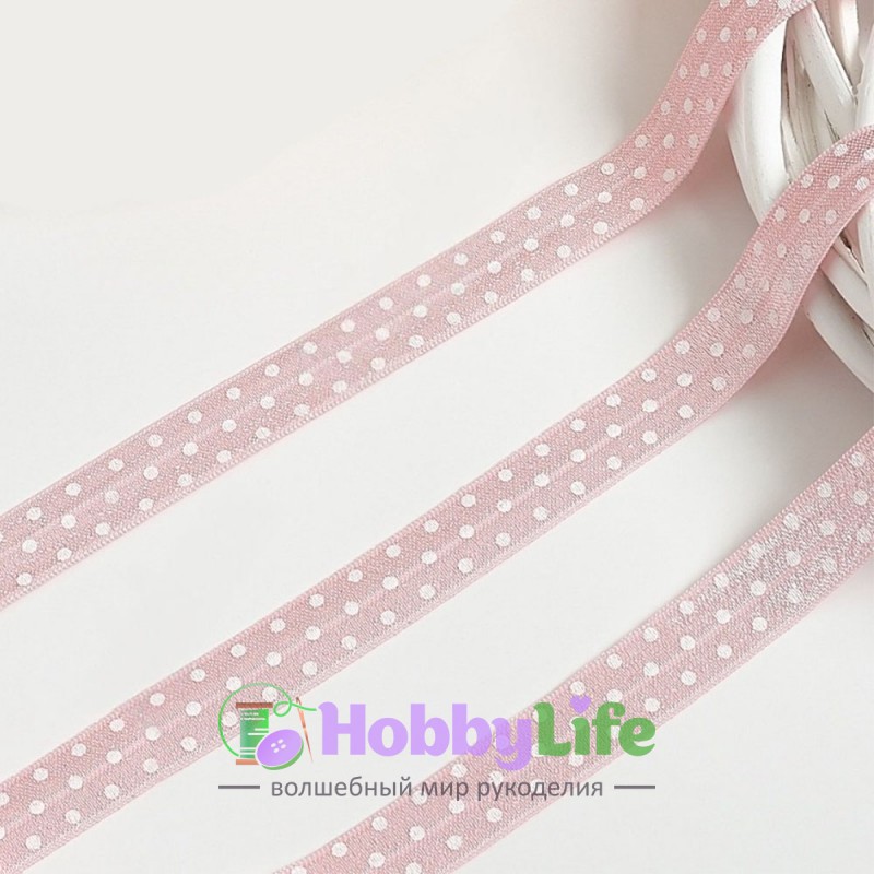 - Тесьма эластичная 1,5 см "Горох" (1 м), розовый