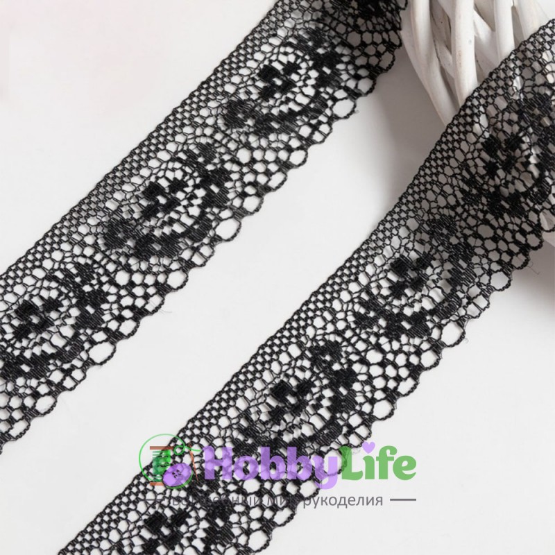 - Кружево 3,7 см ажурное (1 м), черный