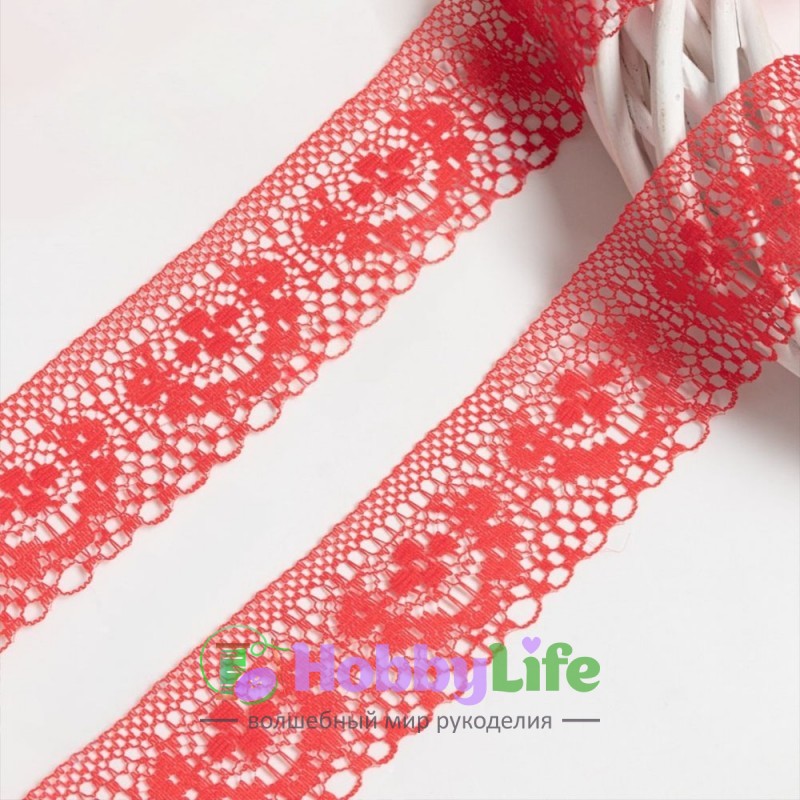 - Кружево 3,7 см ажурное (1 м), красный №1