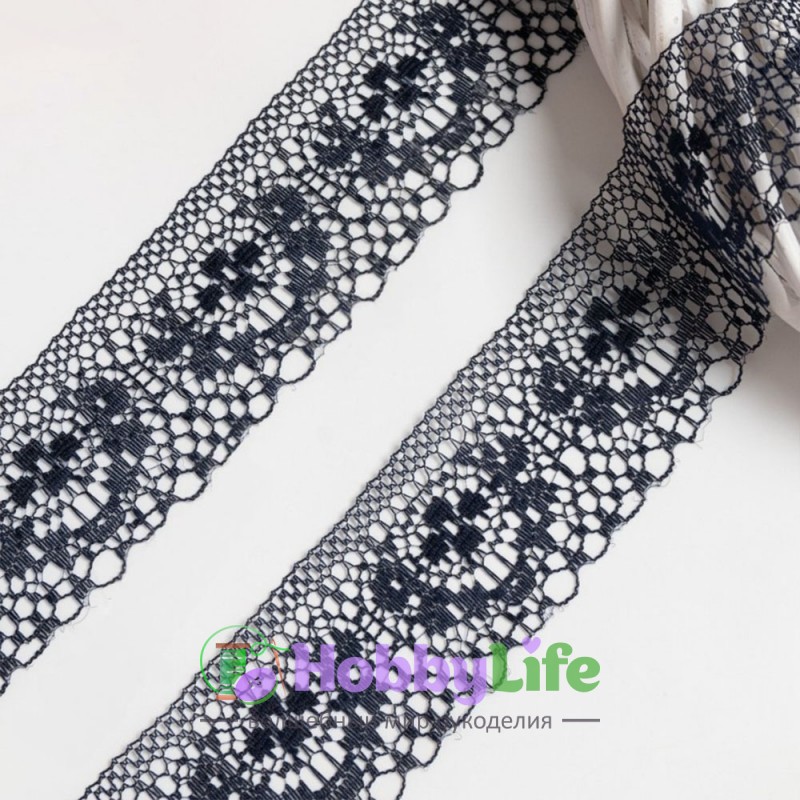 Кружево 3,7 см ажурное (1 м), темно-синий №8