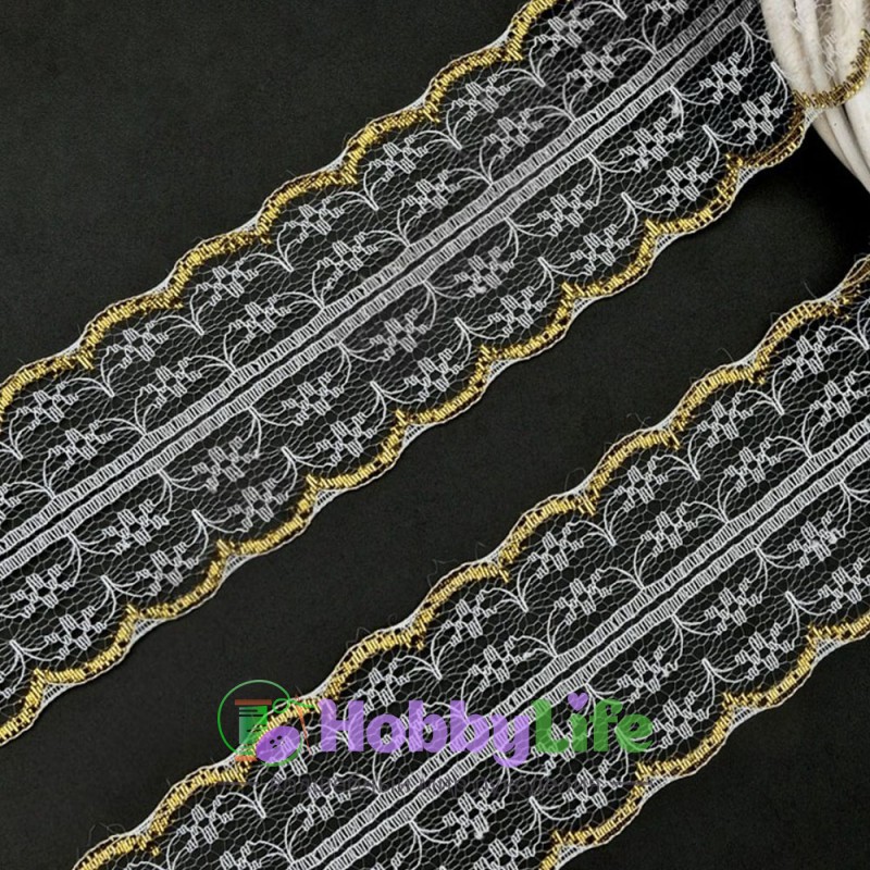 - Кружево с люрексом 4,5 см (1 м), белый/золото