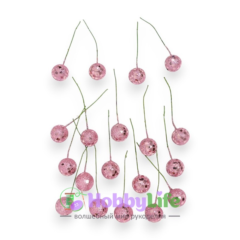 - Ягодка на веточке с пайетками 1,5 см (1 шт), розовый